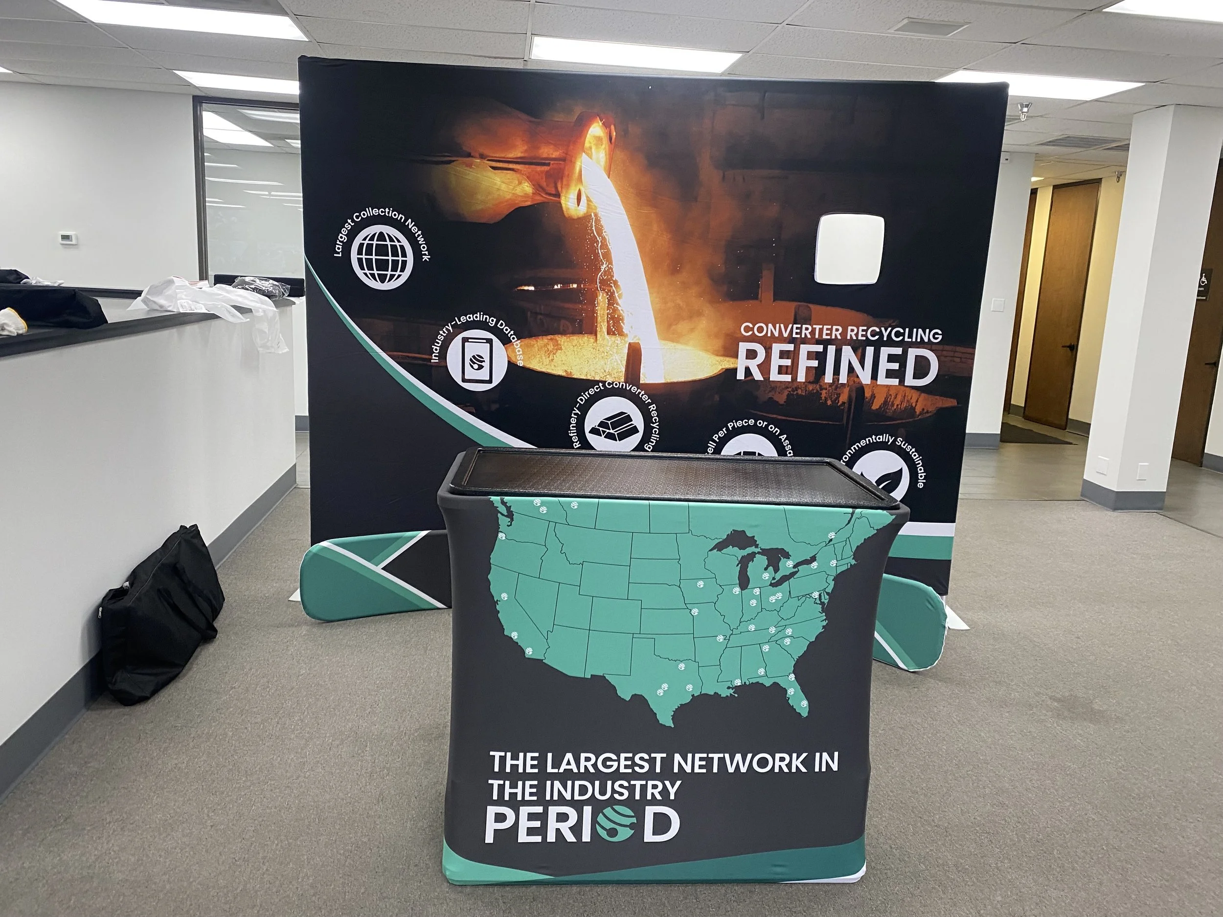 One of the biggest projects assigned to me was the convention backdrop for trade shows. I was in charge of creating the backdrop, header, as well as the design for the podium.
